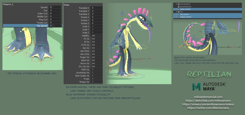 Reptilian rig for Maya